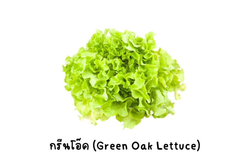 ขอเริ่มต้นด้วยผัก Lettuce ที่เป็นตัวท็อปของวงการอย่างกรีนโอ๊ค ซึ่งถือเป็นผักสลัดที่หลายคนคุ้นเคยกันดี และได้รับความนิยมอย่างมาก เนื่องจากรับประทานง่าย กรีนโอ๊คจัดอยู่ในกลุ่มพืชตระกูลผักกาด มีลักษณะเด่นคือใบสีเขียวอ่อนที่มีรูปทรงหยัก ใบเรียงซ้อนกันเป็นพุ่ม เนื้อสัมผัสนุ่มนวลไม่แข็งกระด้าง และมีรสชาติหวาน ไม่มีความขมเลย ทำให้เหมาะสำหรับผู้ที่เริ่มทานผัก โดยเฉพาะเด็กเล็กที่มักนิยมรับประทานแบบสด ๆ