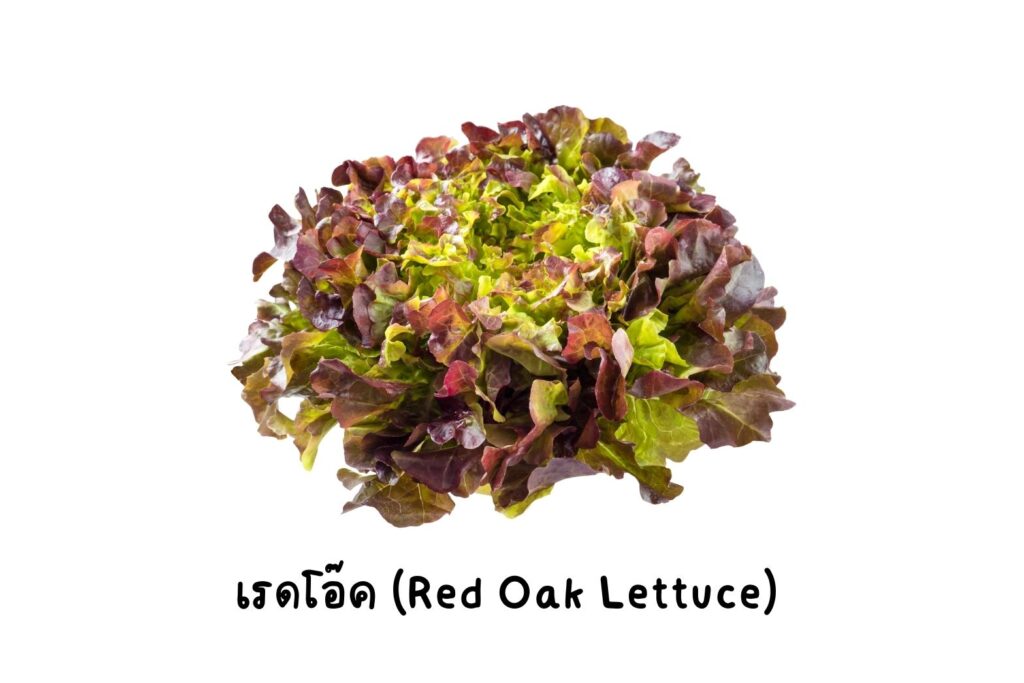 เรดโอ๊คเป็นผักสลัดชนิดหนึ่งที่มีลักษณะคล้ายกับกรีนโอ๊ค ทั้งในแง่ของรูปทรงลำต้นและใบ โดยมีเนื้อสัมผัสนุ่มและรสชาติหวาน แต่จะมีความแตกต่างในเรื่องของสีสัน เนื่องจากเรดโอ๊คมีใบที่มีสีแดงผสมกับสีเขียวอ่อน ทำให้เป็นผักสลัดที่ได้รับความนิยมในการเพิ่มสีสันให้กับจานสลัดให้ดูน่าสนใจและมีคุณค่าทางโภชนาการมากยิ่งขึ้น