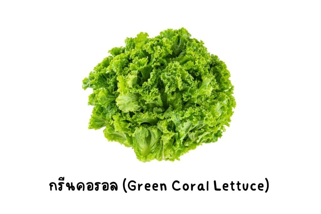 กรีนคอรอล เป็นผัก Lettuce ที่เรารู้จักกันในชื่อ “ผักกาดหอม” ซึ่งมีลักษณะใบที่หยิกมากกว่าผักกาดหอมพันธุ์อื่น ๆ ใบของมันมีรูปร่างคล้ายปะการัง จึงได้ชื่อว่า Coral โดยมีใบขนาดใหญ่สีเขียวอ่อนและลำต้นที่อวบสั้น มีเนื้อสัมผัสกรอบเล็กน้อย ทำให้ทานง่าย กรีนคอรอลถือเป็นผัก Lettuce อีกหนึ่งชนิดที่คนไทยรู้จักและนิยมรับประทานในรูปแบบสด ๆ เป็นอย่างมาก